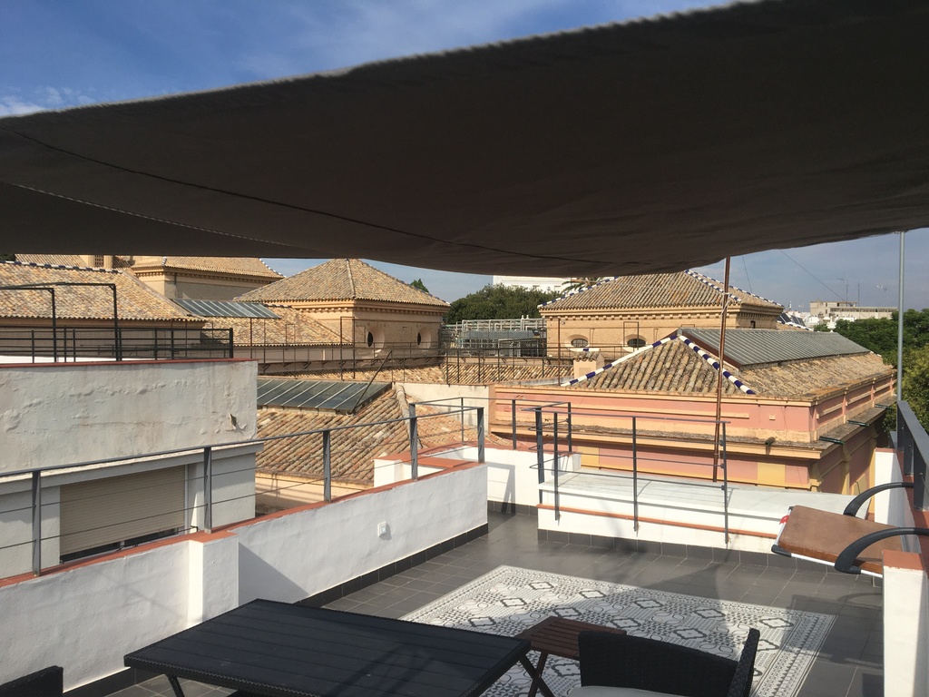 Dúplex con 2 dormitorios, y con vistas espectaculares a la ciudad desde su EXCLUSIVA TERRAZA, cuenta con una ubicación inmejorable junto a la Plaza del Museo, a 5 minutos de un parking y en plena zona de bares de tapas y restaurantes. Está equipado con cocina, comedor, 1 baño completo en dormitorio, 1 aseo de cortesia sin ducha en planta baja, y cuenta con wifi gratuito. Debe contactar con 1 día de antelación a su llegada al 618751501. Las llaves se recogen en recepción, en 7 Calle Pedro del Toro, Sevilla, 41001.